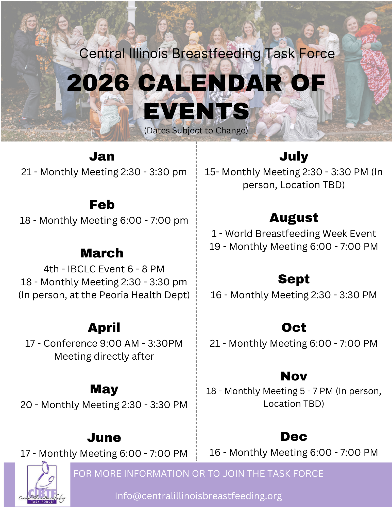 Central Illinois Breastfeeding Task Force 2025 Monthly Meetings